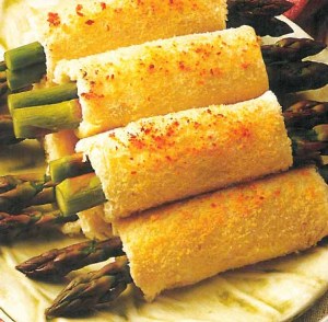 It wasn’t until I was an adult living in Chicago that I began to appreciate its flavor and texture. When we moved back to Wisconsin, about 20 years ago, we discovered an easy recipe for appetizers that made me love asparagus almost as much as my mom had loved it. Basically, you flatten a slice of bread with a rolling pin. (Optional, you may want to cut off the crusts first – we usually don’t bother, but it makes the appetizer look prettier.) Spread cream cheese with chives on one side of the bread. Place three or four stalks of asparagus together in the middle of the bread, and fold the sides of the bread over the asparagus. Place the asparagus-bread roll, seam-side down, on a cookie sheet. Spread butter on the top of the roll and sprinkle with Parmesan cheese. Bake at 400 degrees about 10 minutes. Just thinking about these appetizers makes me want to go out right now and pick the asparagus shoots I saw yesterday.