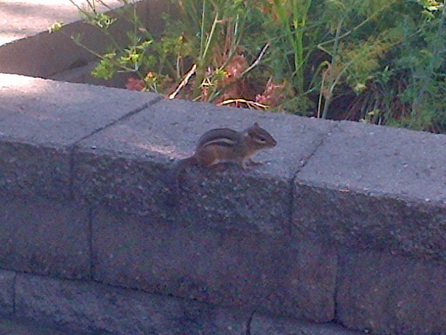 The way Chip and I play the game is that he’s the robber and I’m the cop. He tries to steal a cherry tomato and I try to bring him to justice by snapping a photo as proof of his crime. As soon as he sees me approaching he finds a hiding place, either by darting into a hole in the corner of the raised bed if he’s close to that corner, or he scurries out of the bed and into the downspout.