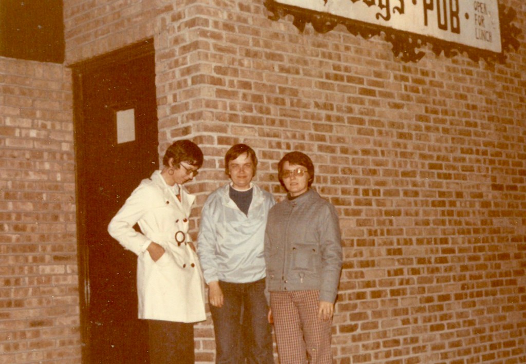 The culinary highlights of our 4-day getaway included half-pound cheeseburgers at Moody’s Pub (our favorite neighborhood bar), barbecued ribs at Calo’s Italian Restaurant (a place we used to frequent for their Thursday night ribs special), and hot fudge sundaes at Margie’s Candies and Ice Cream Parlor. (The Buffalo, our favorite ice cream parlor, no longer exists.) The 1974 picture shows Mim and me and a friend outside of Moody’s Pub.