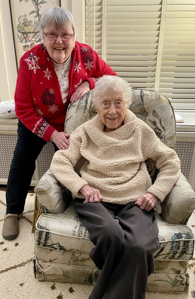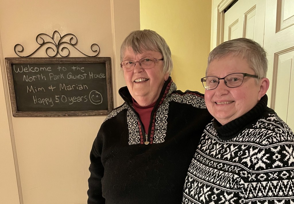 Mim came to the rescue. I was staying with my childhood friend June for a couple days while I searched for an apartment. My first evening I went with June and her husband Arden (a seminary student) to a neighborhood Bible Study. Mim was there. When the Bible Study was finished, she came over to introduce herself to me. When she heard of my plight, she immediately invited me to share her small apartment with her until I could find a place of my own. I never left. February 1, 2023 is our 50th anniversary of living together!